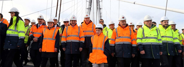 A historic moment has occurred in the 3rd Bosporus Bridge and Northern Marmara Motorway Project, which is carried out by ICA. 3. After placing the last steel floor of Bosporus Bridge, European and Asian sides of Istanbul is connected again. Along with President Recep Tayyip Erdoğan and Prime Minister Ahmet Davutoğlu, Minister of Transport, Maritime Affairs and Communication Binali Yıldırım, Minister of Energy and Natural Resources Berat Albayrak, Minister of Environment and Urban Planning Fatmagül Demet Sarı, Istanbul Metropolitan Municipality Mayor Kadir Topbaş, Governor of Istanbul Vasip Şahin, General Director of Highways İsmail Kartal, IC Holding Chairman of the Board İbrahim Çeçen, ICA Chairman of the Board Fırat Çeçen and bridge workers attended the ceremony.
